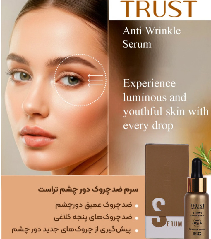 روزانه دو بار صبح و شب چند قطره از سرم ضدچروک قوی دور چشم تراست را روی پوست تمیز نواحی پایین و اطراف چشم قرار داده و بهآرامی توسط نوک انگشتان ماساژ دهید.