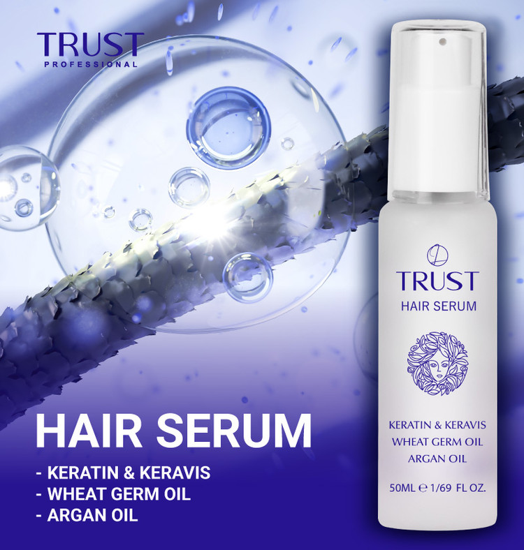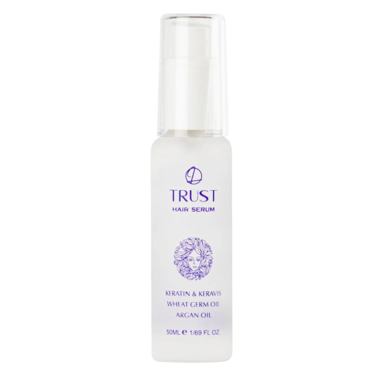 موادموثره در سرم موی تراست، روغن آرگان، کراتین، روغن بادام و جوانه گندم است.