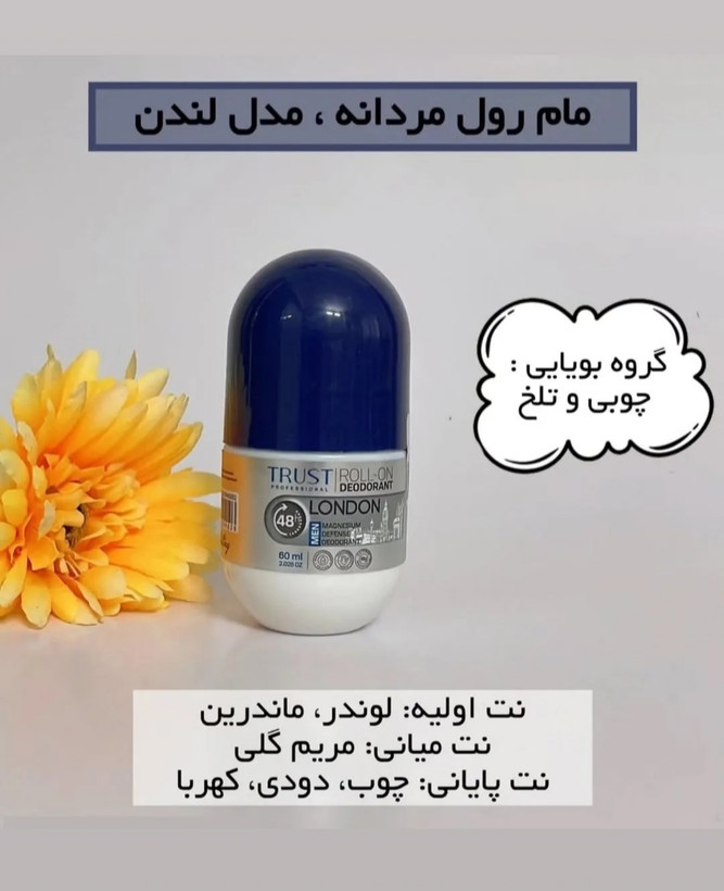لوسیون خوشبوکننده (مام رول) مردانه تراست مدل لندن، دارای رایحهای مشابه عطر Silver Scent Jacques Bogart و گروه بویایی چوبی و تلخ است.