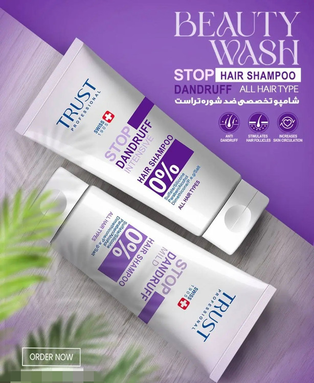 توجه مهم: در طول درمان شوره با محصولات تراست، لطفاً از هیچ شامپو یا محصول مراقبت موی دیگری استفاده نکنید و در صورت نیاز فقط ازسرم کراتین و آرگان استفاده نمایید.