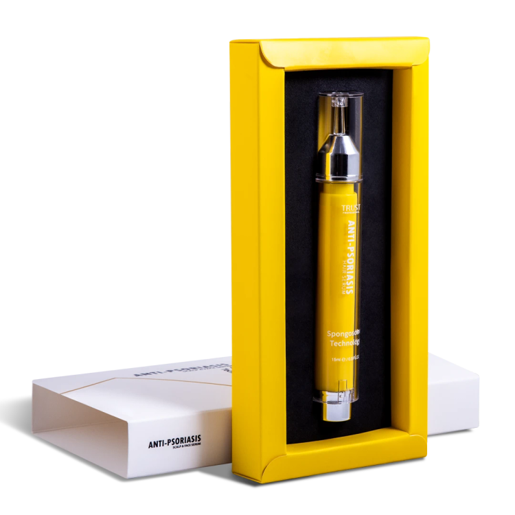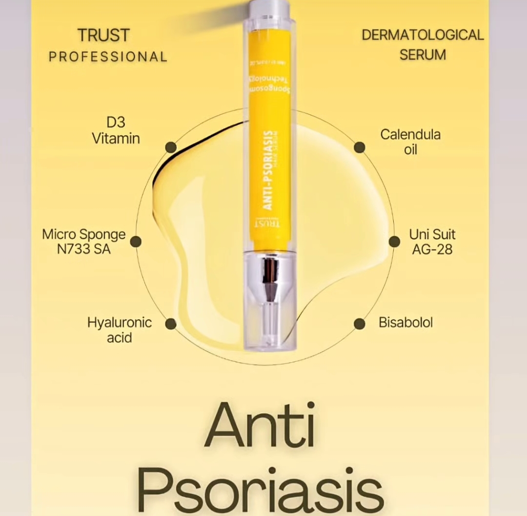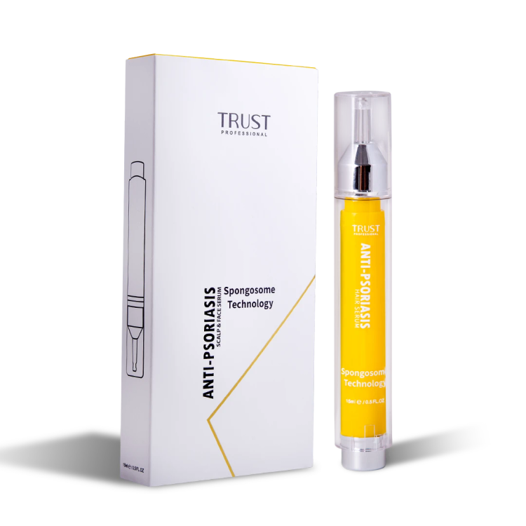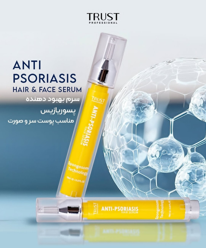 سوریازیس نوعی بیماری خودایمنی پوستی است که راشها یا پلاکهای پوستی و ضایعاتی را در پوست سر، صورت، زانوها، بازوها و قسمت بالا تنه ایجاد کرده و به عنوان یک بیماری مزمن و بلند مدت شناخته میشود. این پلاکها دردناک هستند و با داشتن یک سیکل مشخص به مدت چند هفته تا چند ماه بروز پیدا کرده و پلاکهایی که رنگ متغیری دارند معمولا به صورت پوستههای صورتی تا قرمز بروز پیدا میکنند. این بیماری با علایم مختلفی مثل خشکی پوست با خونریزی، خارش و سوزش همراه است. پسوریازیس نواحی مختلفی از بدن را درگیر میکند که یکی از مهمترین قسمتها پوست سر و صورت است. شیوع پسوریازیس در پوست سر و صورت منجر به خشکی پوست شده و در نهایت باعث آسیب پوست و شکنندگی و ریزش موها میشود. بنابراین برای کنترل علایم پسوریازیس میبایست از محصولات مراقبتی مناسب استفاده کرد. سرم بهبود دهنده پسوریازیس تراست با بهرهگیری از تکنولوژی اسپانجوزوم به طور موثری به نفوذ و رهاسازی پیوسته ترکیبات لایهبردار و بهبود دهنده ساخت سلولهای جدید در پوست سر و صورت کمک کرده و با بهبود پلاکهای پسوریازیس و کاهش علایم بیماری، سلامت پوست را حفظ میکند. این محصول با دارا بودن ترکیبات موثره آبرسان و ضد التهاب، از خشکی پوست سر و صورت جلوگیری کرده و با مهار واسطههای التهابی، از پیشرفت عارضه جلوگیری کرده و کمک شایانی به بهبود ضایعات پسوریازیس میکند.