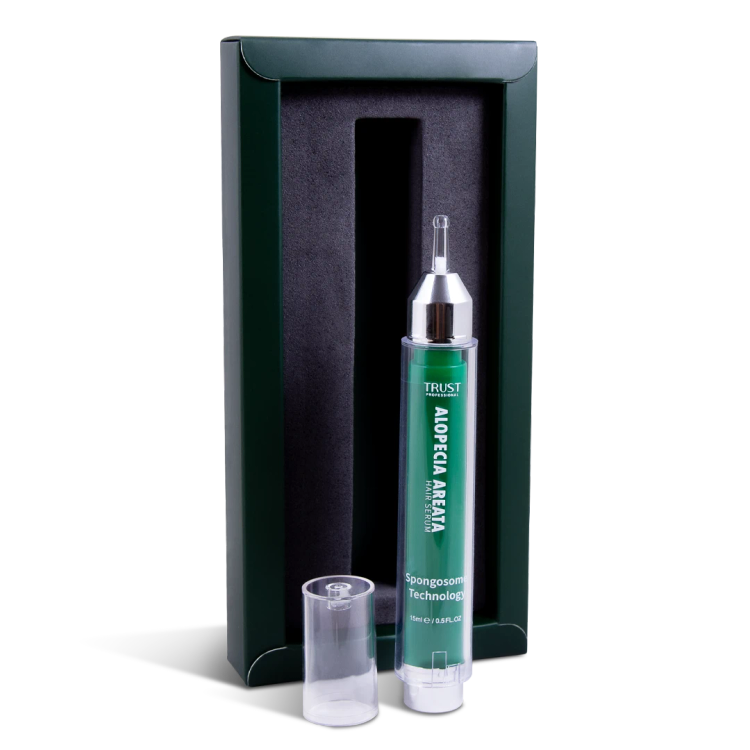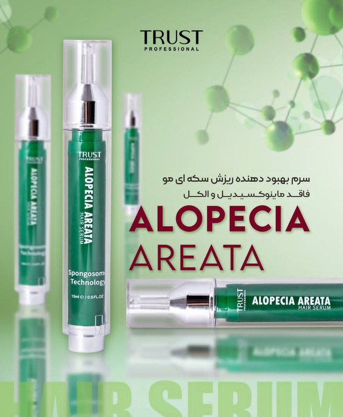 ریزش سکه ای بیماری است که به دلیل نقص سیستم ایمنی ایجاد شده و منجر به ریزش موها در نواحی مختلف بدن به ویژه در ناحیه سر و صورت از جمله ریش و سبیل میشود. ریزش سکه ای همانطور که از نام آن مشخص است در نواحی کوچک و به صورت سکه ای ایجاد شده و ممکن است به فرم خفیف تا پیشرفته افراد مختلف را درگیر کند. بهبود بیماری و برطرف شدن علایم در افراد مختلف متفاوت است و به شدت بیماری و نوع محصولات مراقبتی مورد استفاده بستگی دارد. یکی از راهکارهای اصلی برای بهبود علایم ریزش سکه ای و بهبود ریزش مو استفاده از محصولات مراقبتی و سرمهایی است که به رشد مجدد موها کمک کرده و از پیشرفت ریزش مو جلوگیری میکنند. سرم بهبود دهنده ریزش موی سکه ای تراست، با دارا بودن تکنولوژی منحصر به فرد اسپانجوزوم، به طور موثری نفوذ ترکیبات موثره ضد التهاب و محرک رویش مجدد فولیکول های مو را به سلولهای پوست سر افزایش داده و به طور چشمگیری موجب بهبود رشد فولیکول و تحریک رشد موها در این ناحیه میشود. این محصول فاقد ماینوکسیدیل و الکل بوده و ترکیبات موثره مورد استفاده در آن، فولیکول های مو را تغذیه و خونرسانی کرده و با ترمیم فولیکول های آسیب دیده، به از بین بردن و بهبود ریزش سکه ای مو کمک میکنند.
