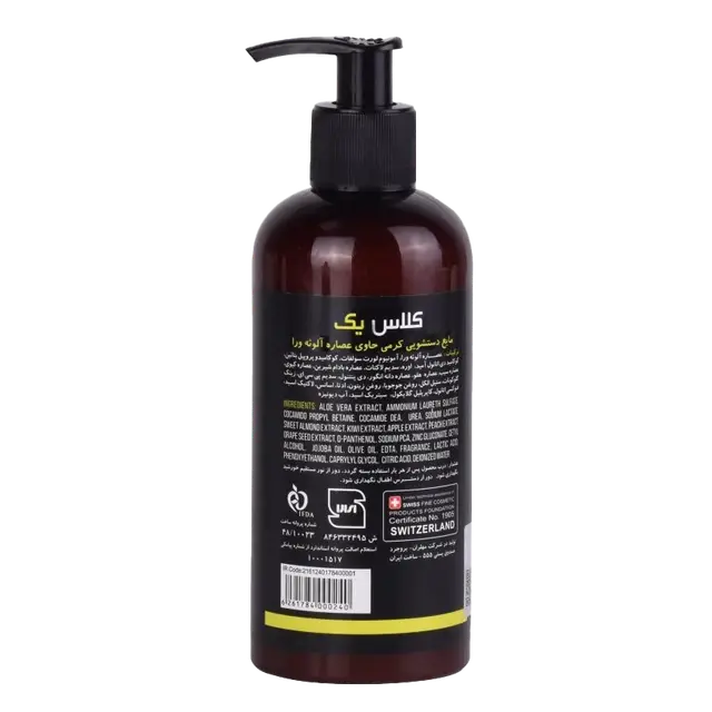 مایع دستشویی کرمی کلاس یک حاوی عصاره آلوئه ورا ،حجم ۳۰۰میل