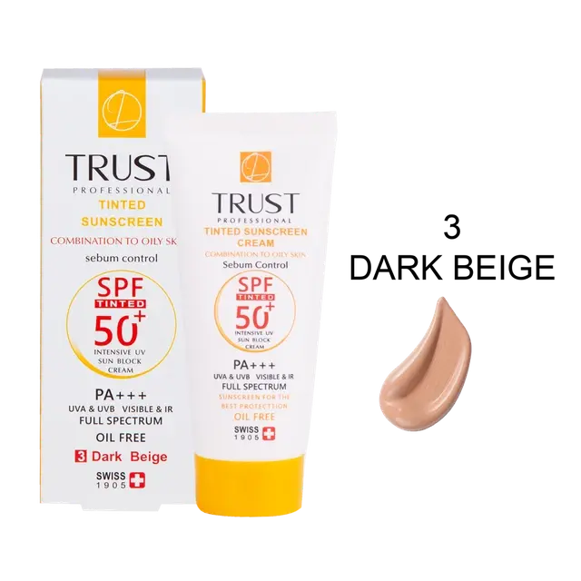 کرمهای ضدآفتاب رنگی تراست با SPF50+ از مرغوبترین و جدیدترین مواد اولیه موثره دارای حداکثر حفاظت دربرابر پرتوهای مضر خورشید ساخته شدهاند؛ این کرم با وجود بهرهمندی از بافتی سبک، دربرابر آسیبهای وارده توسط نور خورشید به خوبی از پوست محافظت و با مهار رادیکالهای آزاد از تخریب سلولهای پوستی جلوگیری میکند. همچنین با مصرف این محصول، بدون بسته شدن منافذ پوستی و ایجاد خلل در تنفس سلولهای پوستی، پوستتان آبرسانی میشود.