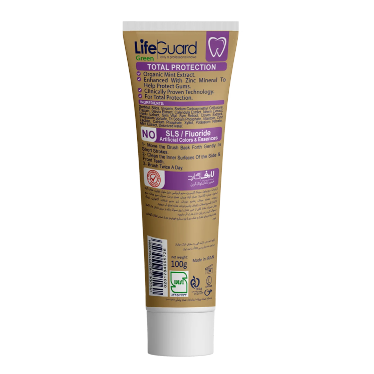 خمیر دندان گرین برند لایف گاردمدل توتال فاقد فلوراید۱۰۰گرم