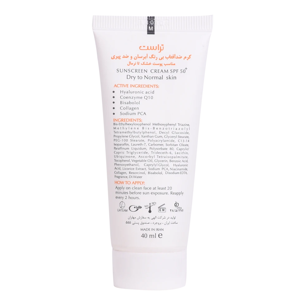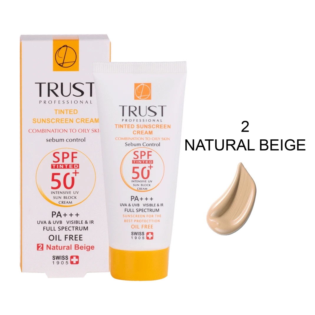 ضد آفتاب رنگی وضد پیری تراست پروفشنال،spf50 شماره۲بژ طبیعی مناسب پوست خشک تا نرمال حجم ۴۰میل