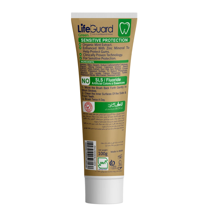 خمیر دندان محافظ لثه ودندان حساس گرین برند لایف گارد حجم ۱۰۰گرم