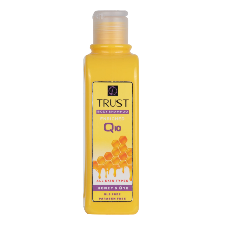 شامپو بدن عسل و Q10 تراست، حاوی عسل است که لایه رویی پوست را آبرسانی میکند و چین و چروکهای پوست را کاهش میدهد. همچنین این شامپو بدن با داشتن کوآنزیم کیوتن به تقویت سد دفاعی پوست کمک میکند و جلوی آسیب پرتوهای UV خورشید را میگیرد. عصاره بابونه موجود در این محصول ضدالتهاب و روشنکننده پوست است.