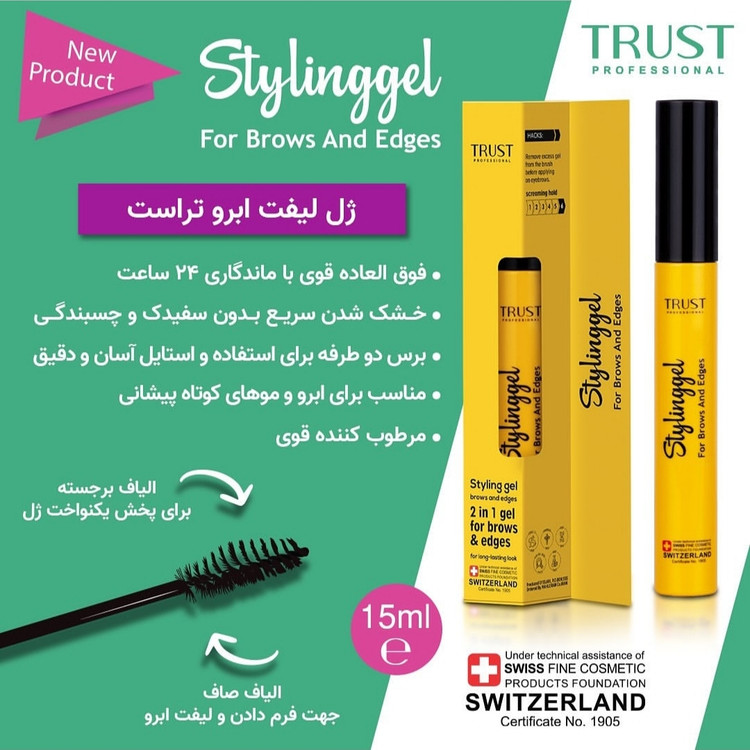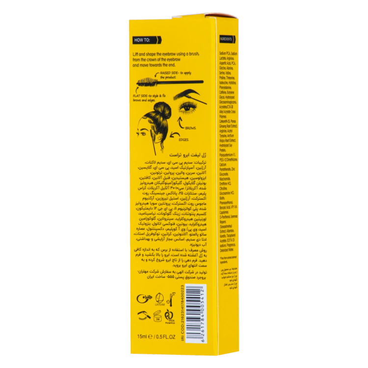 فوق العاده قوی با ماندگاری تا 24 ساعت، خشک شدن سریع، بدون سفیدک و چسبندگی، برس دوطرفه برای استفاده و استایل آسان و دقیق، مرطوب کننده قوی، مناسب ابرو و موهای کوتاه پیشانی