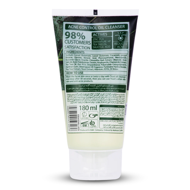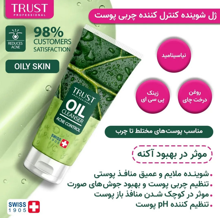 روش مصرف: روزانه یک تا دو مرتبه پوست صورت را توسط ژل شوینده تراست شستشو داده و پس از 30 ثانیه آبکشی نمایید. سپس میتوانید از کرم ضدجوش و کنترلکننده چربی تراست استفاده کنید.