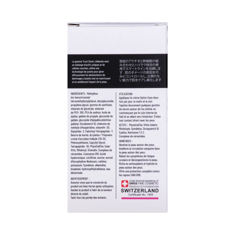کرم ضدتیرگی و پف دور چشم تراست اسمارت را روزانه دو بار صبح و شب از سمت داخل به خارج، بر روی پوست اطراف چشم با حرکات ملایم و ضربه ای پخش کنید.