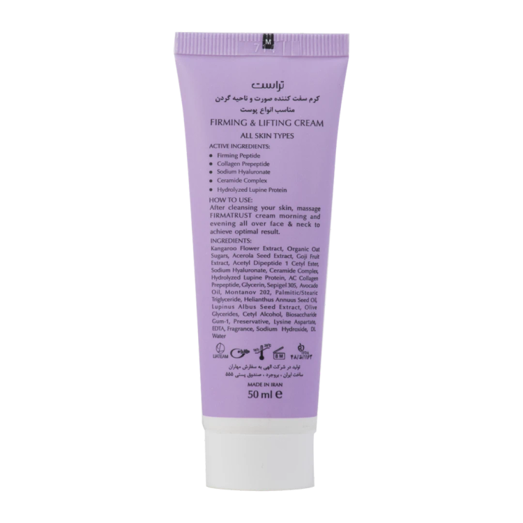 کرم فرماتراست با بهرهمندی از مجموعهای منحصربهفرد از ترکیبات پپتیدی فوقالعاده با تحریک متابولیسم (جهت ساخت کلاژن و الاستین)، افزایش تنفس سلولی و افزایش خاصیت ارتجاعی پوست، باعث استحکام و تقویت پوست ناحیه صورت، گردن و سینه میشود. مصرف این محصول به خاطر بهرهمندی از انواع آنتیاکسیدان تاثیرگذار، عوامل محیطی همچون آلودگیها و رادیکالهای آزاد را خنثی کرده و به پوست فرصت میدهد تا ساختار بنیادین خود را بازسازی کند. همچنین استفاده از این کرم با داشتن مواد موثره مرطوبکننده با حفظ سطح آب پوست، طراوت، شادابی و جوانی را برایتان به ارمغان میآورد.